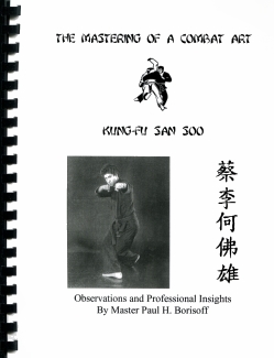purchase: A Fighter's Guide to Learning Kung-Fu San Soo (Click Here) 34 Topics, 73 pages… The Mastering of a Combat Art - Kung-Fu San Soo is printed on 8-1/2 x 11, 24 lb. paper stock and is comb-bound allowing the volume to lie flat during use. It is copyrighted and may not be reproduced without permission from the author.